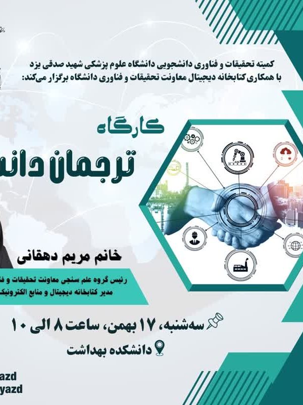 کارگاه آموزشی ترجمان دانشمدیر کتابخانه دیجیتال30 دی 1402کارگاه آموزشی ترجمان دانش ویژه دانشجویان مدرس: سرکار خانم مریم دهقانی مکان: سالن ... اطلاعات بیشتر